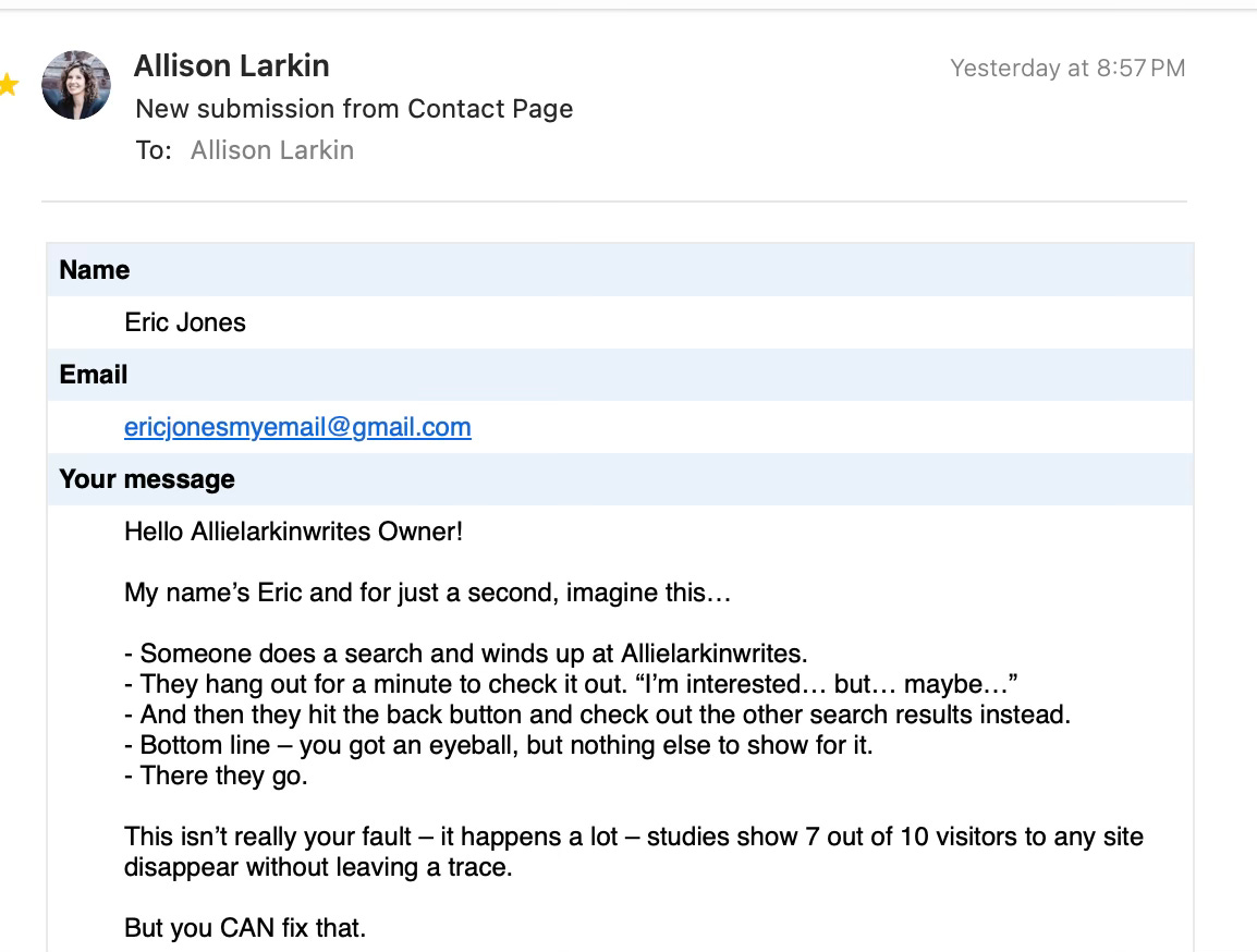 Every day, sometimes as often as three times a day, I get an email from Eric Jones through the contact form on my website.